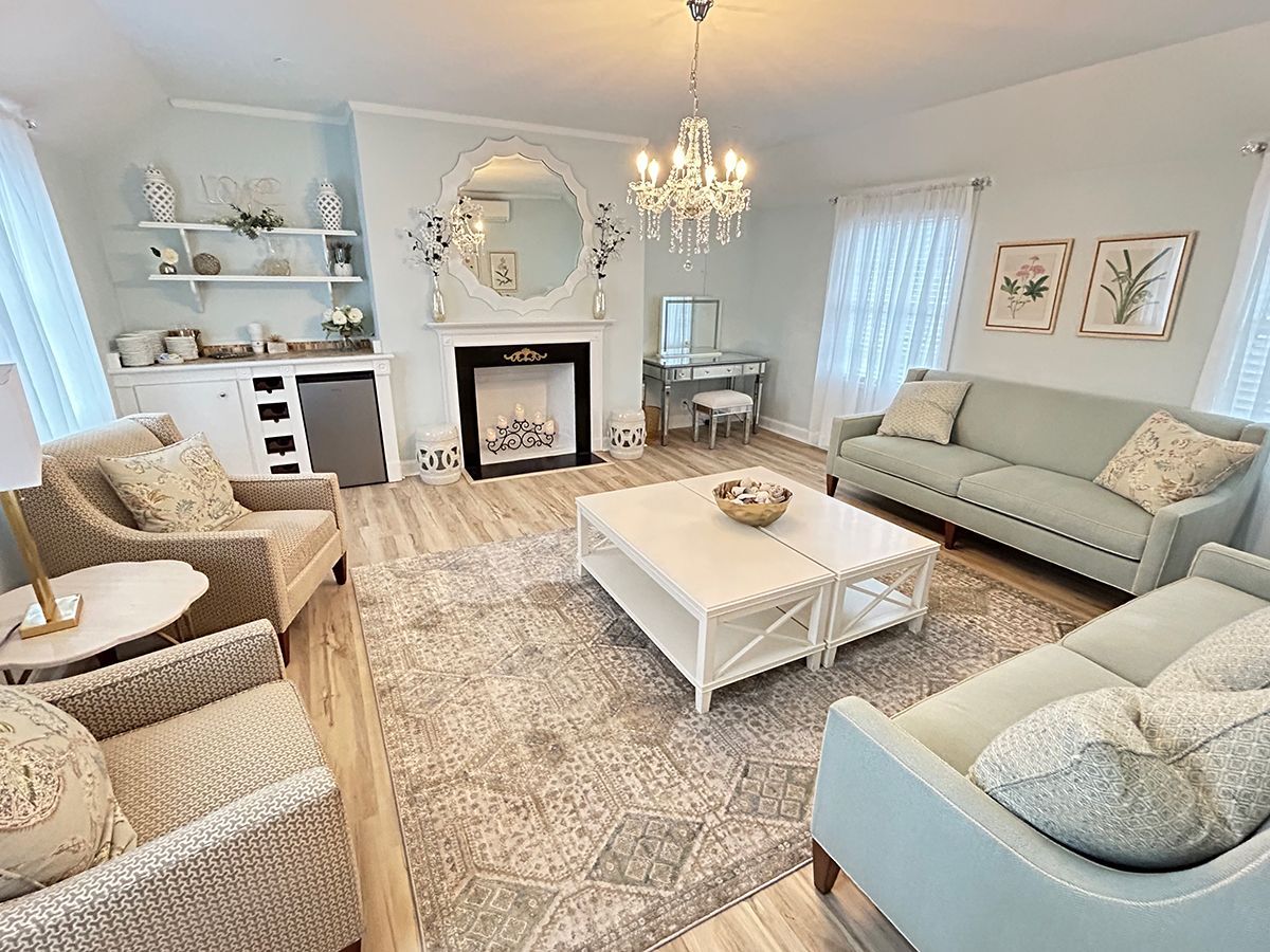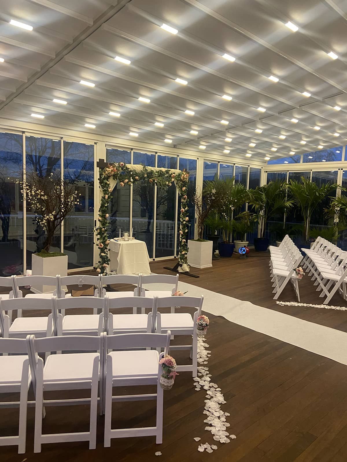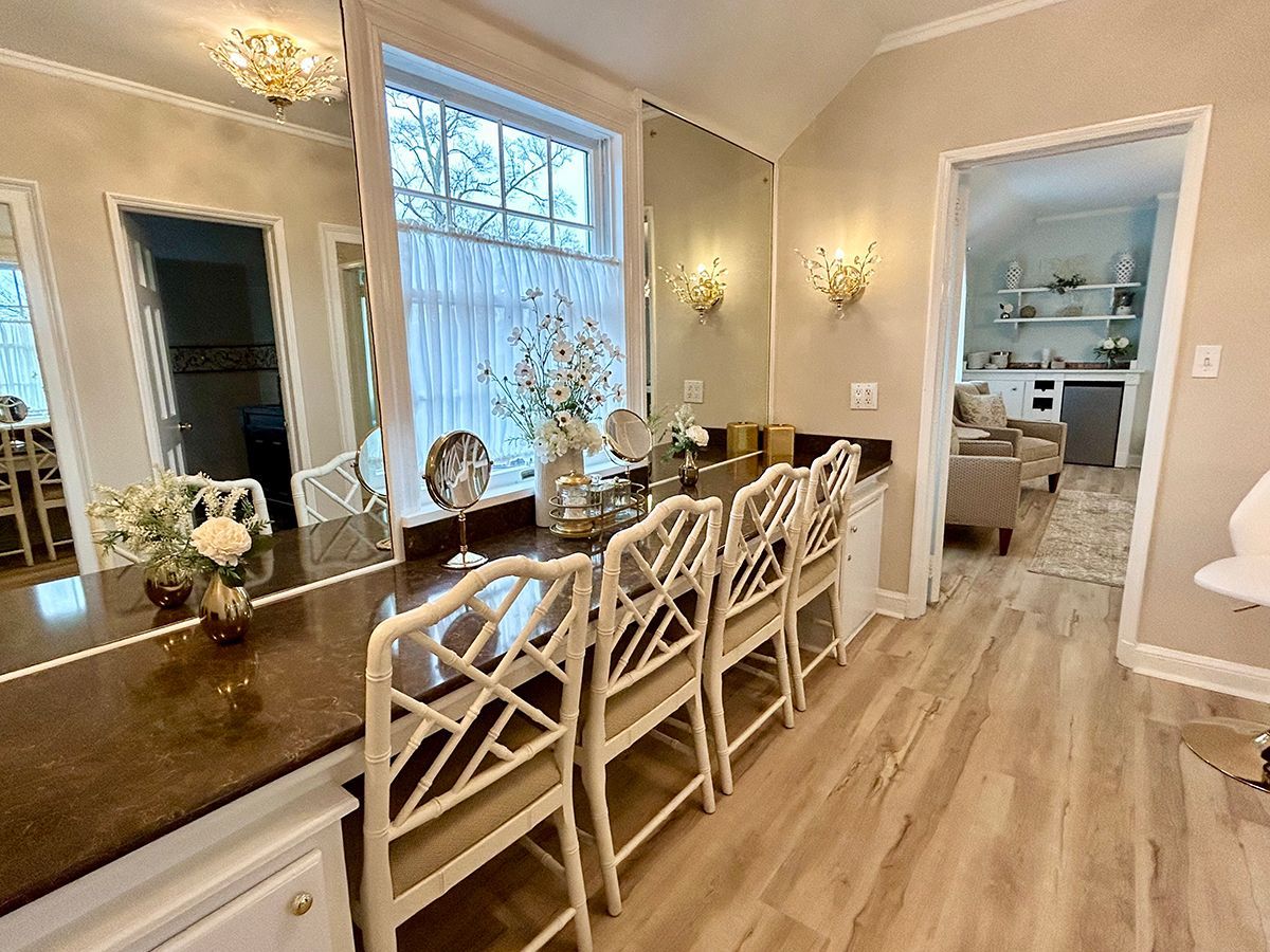 The charm of the Nissequogue House displays a coziness and warmth with its gorgeous ceiling mural and two fireplaces, nestled amongst trees with a breathtaking view of the Nissequogue River. You will also be able to enjoy the newly renovated outdoor terrace with a retractable roof and windows for all year-round use. Surrounded by windows, the Nissequogue House floods with sunlight all day, creating a beautiful and bright ambiance. The bridal Suite resides within this venue, featuring all necessary amenities for a bride’s perfect day including prep areas and vanities for the entire bridal party.